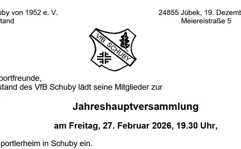 der Vorstand des VfB Schuby lädt seine Mitglieder zur